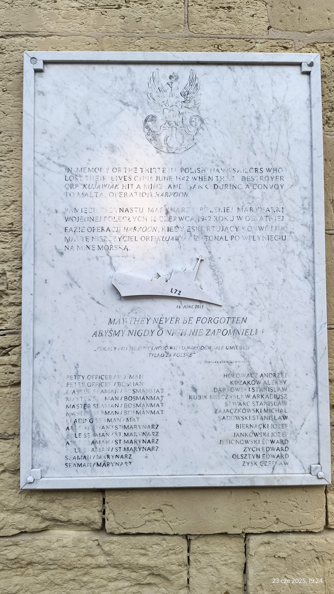 Stojąc dziś przy tej tablicy, wśród zieleni ogrodów i z widokiem na błękitne wody portu, poczułyśmy dumę i wzruszenie. To niezwykłe, jak historia potrafi wybrzmieć tak donośnie – nawet z kamiennej płyty na obcej ziemi. Malta, tak daleka, a jednak przez takie ślady – tak bliska.